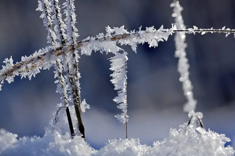 Пар от реки тут же замерзает и образует большие, в несколько сантиметров кристаллы.