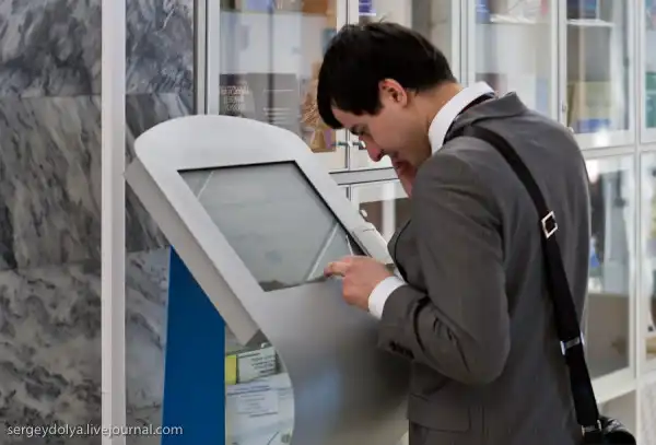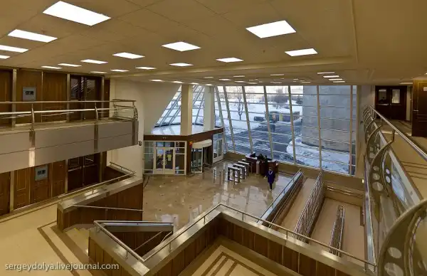 Это уже современное здание со стеклянными лифтами и внутренним пространством, напоминающее гостиницу: