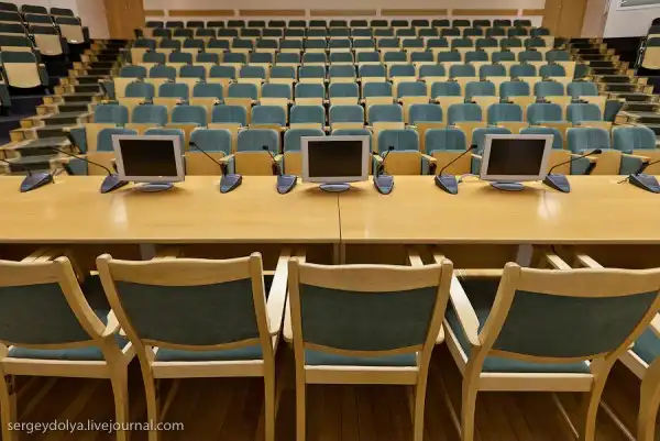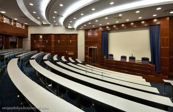 Зал №1, в котором заседает Ученый совет МГИМО-Университета. Именно в этом зале свои докторские лекции читали такие люди как Ирина Бокова – глава ЮНЕСКО, Шимон Перес – президент Израиля, Пан Ги Мун – Генсек ООН, Винтон Серф - один из разработчиков протокола TCP/IP, «отец интернета» и др.