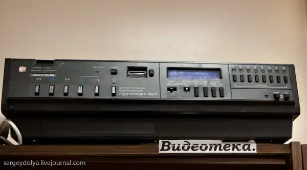 Но полный "взрыв мозга" у меня произошел, когда я увидел мой первый видеомагнитофон - "Электроника ВМ-12". Я помню, как мучился с ним в детстве и был уверен, что они если и остались где-то, то только в музеях или на бабушкиных чердаках. Как мне объяснили, он здесь как раз и стоит в качестве музейного экспоната: