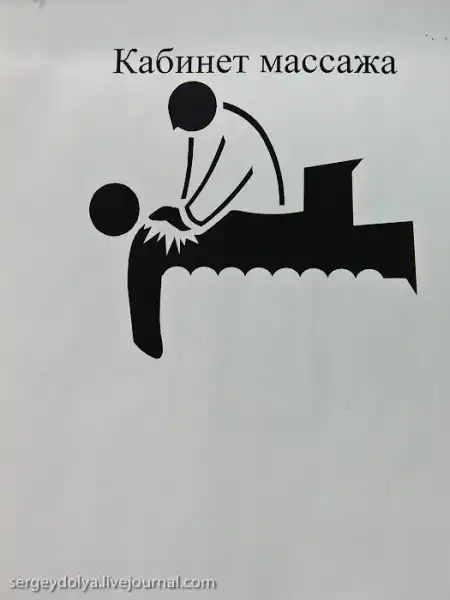 Современные пиктограммы явно выделялись на фоне остального здания, давно не видевшего ремонта: