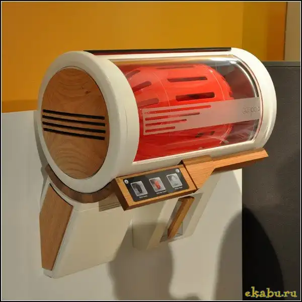 И, конечно, опытный дизайнер учел и психологический фактор. В окружении бетонных коробок наши потомки будут очень тосковать по живой и зеленой природе - поэтому в дизайне Eco Pod преобладают покрытия "под дерево". Таким образом, эта маленькая стиральная машина размером чуть больше хлебницы должна идеально вписаться в городскую квартиру будущего. Если, конечно, ее воплотят в жизнь - а это не исключено: концепт вошел в шорт-лист премии Джеймса Дайсона (Australian Design Award 2011).