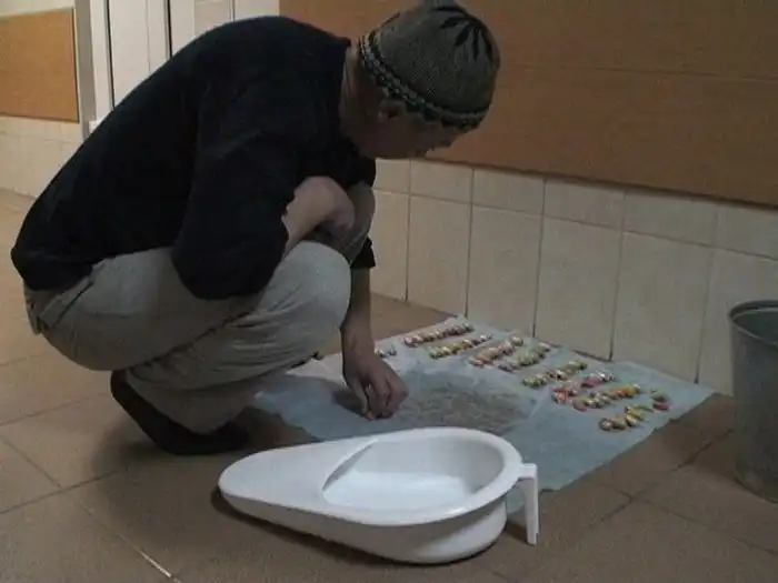 После того, как его задержали, то стал вопрос о том, как достать этот самый гашиш из курьера.
