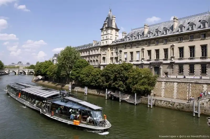 Прогулочный теплоход «Бато Муш» проплывает мимо парижского Дворца Правосудия. Такие прогулки по реке очень популярны среди туристов, так как дают возможность не только осмотреть Париж, но и расслабиться.