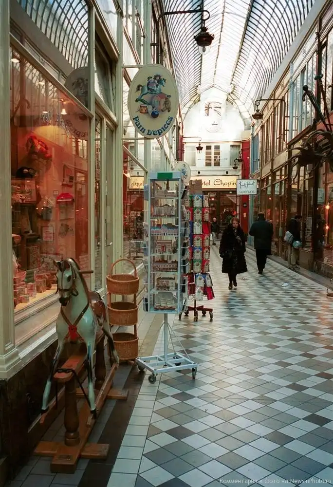 В пассаже Жоффруа, наискосок от бульвара Монмартр, можно приобрести изделия местных художников, продукты и другие товары. Изначально эти проходы, протянувшиеся между Гранд-Бульваром и Лувром, проектировались с целью защитить пешеходов от грязи и конных повозок.