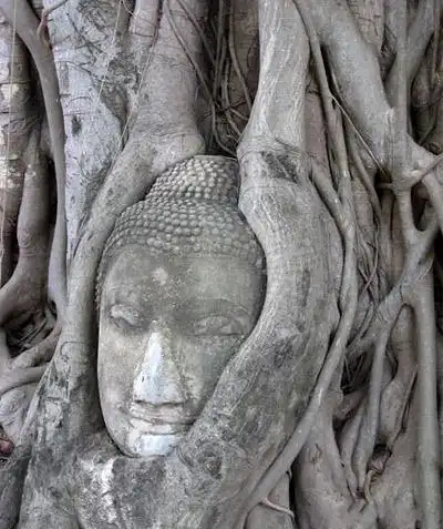Самым знаменитым "сидельцем под баньяном" был Будда Гаутама. 25 веков назад, медитируя под фикусом, царевич достиг просветления. Было это на Шри-Ланке и продолжалось 49 дней. Дерево Бодхи, к которому приходят молиться паломники наших дней — это пра-пра-правнук того самого баньянового дерева, у которого Будда прозрел. Хотя многие думают, что это и есть тот самый священный фикус. Ну и пусть думают. Для монахов нет разницы: свято само место, а не воздушные корни.