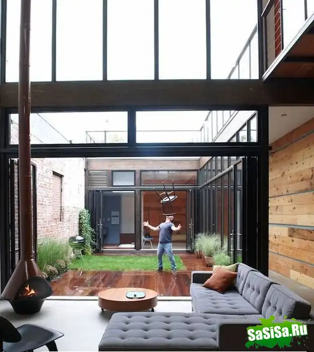 С виду, этот дом очень похож на гараж или какое-нибудь складское помещение, на самом деле, попав внутрь, понимаешь, это всего лишь маскировка. Дом очень большой и современный.