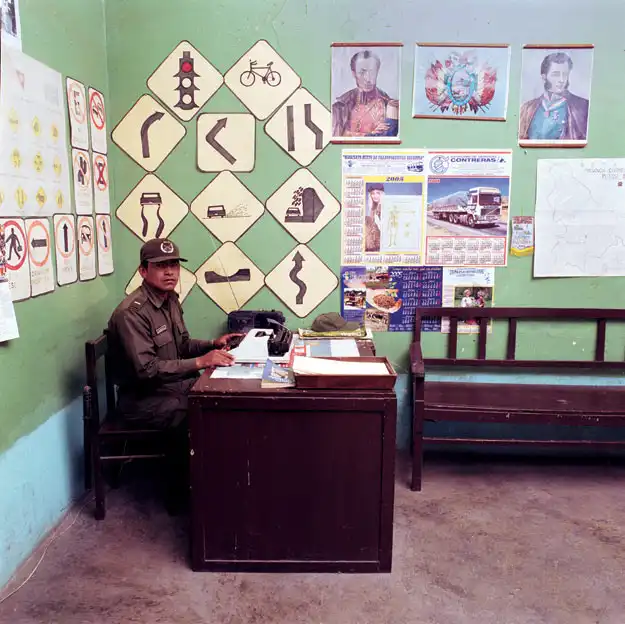 Полицейский Хоче-Галарза Мендес получает примерно 140 долларов в боливийском Потоси. Из них 5-10 долларов ежемесячно он вынужден тратить на изгтовление наглядной агитации в полицейском участке.