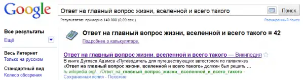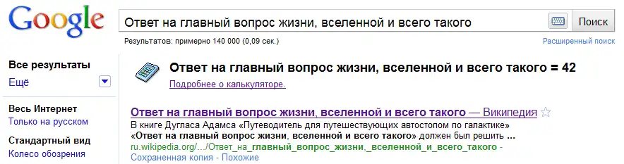 Google решил не отставать: [leech=]загуглить ответ на главный вопрос жизни, вселенной и всего такого[/leech]