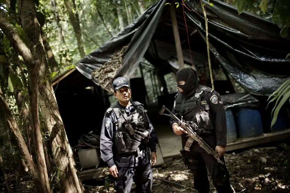 9. Полицейские рядом с подпольной лабораторией по производству кокаина в Серо-Негро, недалеко от Сан-Педро Сула. (Tomas Munita/The New York Times