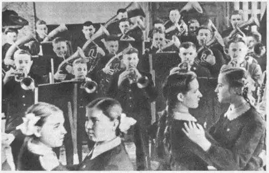 Юрий Гагарин (в первом ряду музыкантов второй справа) — трубач в самодеятельном оркестре ремесленного училища в подмосковном городе Люберцы