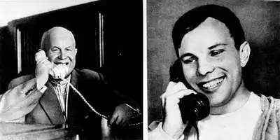 Ю.А. Гагарин беседует по телефону с Н.С. Хрущевым. Фото РКК "Энергия"
