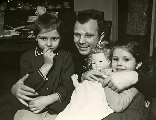Ю.А. Гагарин с дочерьми. Фото РКК "Энергия"
