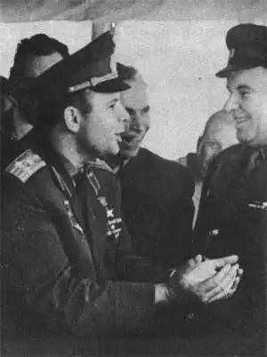 После возвращения из космоса встреча с Г.С. Титовым, будущим космонавтом № 2