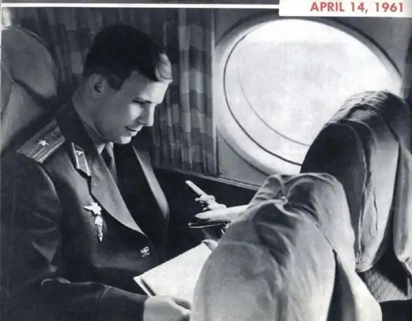 Ю.А. Гагарин в кабине самолета ИЛ-18 на пути из Куйбышева в Москву 14 апреля 1961 г.