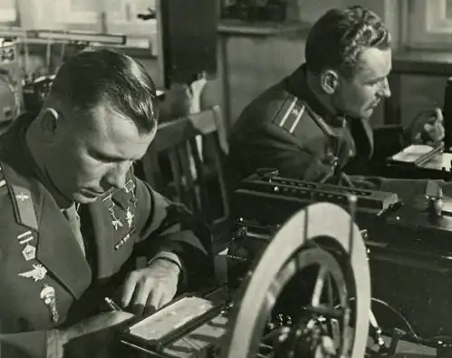 Ю.А. Гагарин и Г.С. Титов на занятиях в академии