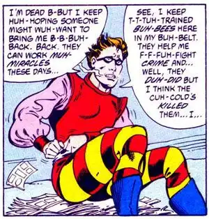 Есть ли в этом супергерое хоть что-то хорошее? Хм, нет. Я уверен, что даже в те годы, когда этот персонаж был придуман, слово «whizzer» означало на слэнге «ссущий человек». Но думается мне, что даже супергерой, пользующийся магическими потоками мочи для того, чтобы расстраивать планы криминальных мыслителей, выглядел бы значительно менее по-идиотски, чем этот парень.