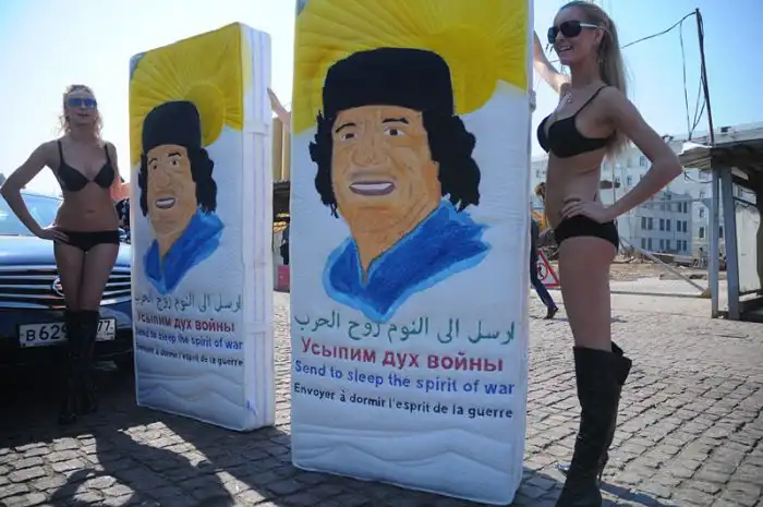 Также с собой они принесли три матраца, на которых был нарисован ливийский лидер – полковник Каддафи.