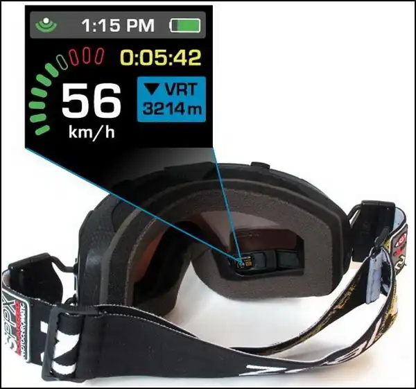 Дело в том, что во время езды лыжнику было бы полезно знать многую информацию, касающуюся его сегодняшнего состояния и положения. Вот лыжные очки Zeal Optics GPS как раз и предназначены для того, чтоб дать ее ему.