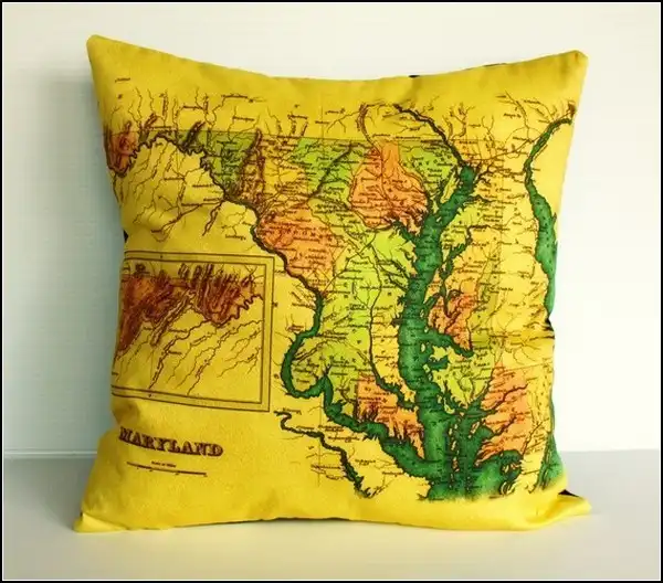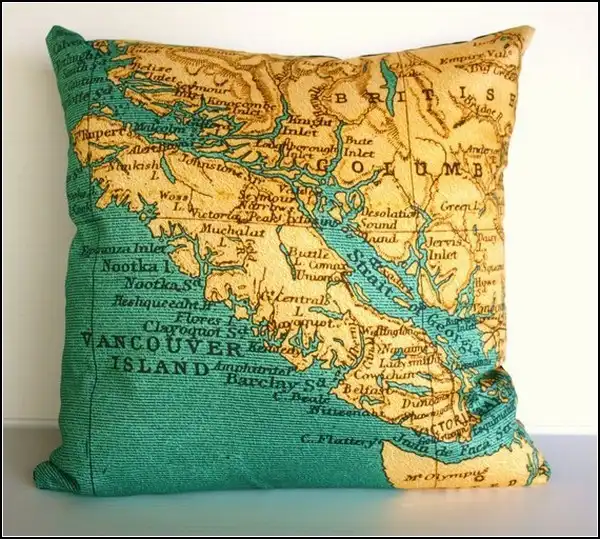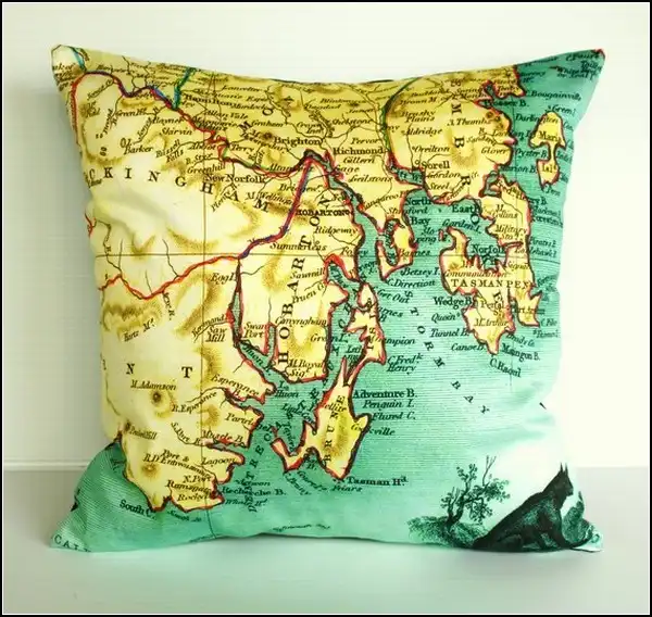 Маленькие подушки могут служить как диванным декором, так и настоящей подушкой для сна, ее можно брать с собой в путешествие, как и подушку-открытку, о которой мы писали ранее, либо же давать поиграться детям, - пусть заодно и географию подучат. Ведь на каждой из подушек изображен кусок карты: большой крупный город, или же целая страна, а то и часть океана с его островными государствами.