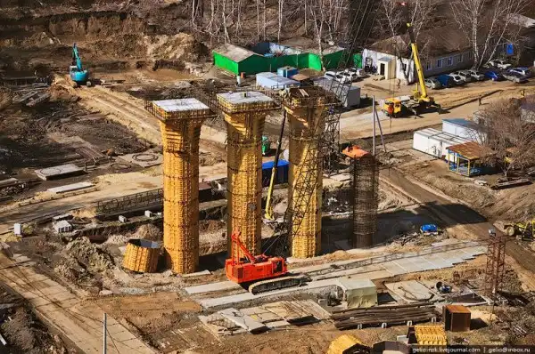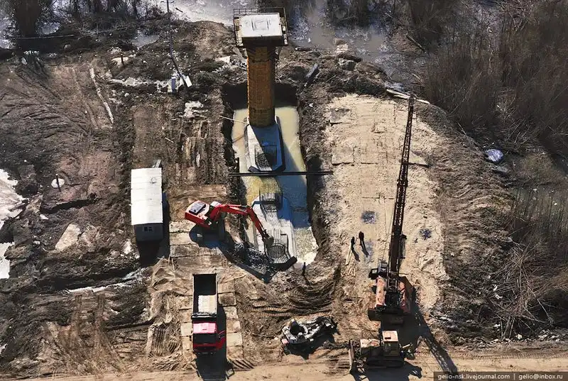 С помощью крана Hitachi Мостоотряд-38 ведёт сооружение опоры №3.