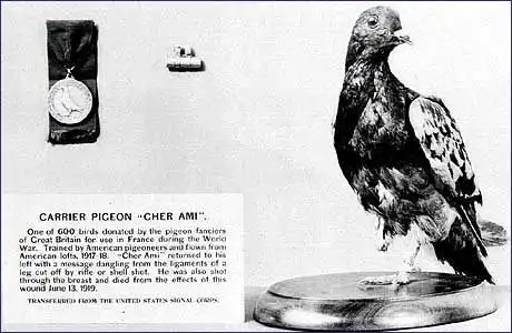 Как только жизнь Cher Ami оказалась вне опасности, его переправили в США на корабле, причем провожал его из Франции лично генерал Першинг. Голубь был награжден французской медалью Военного Креста с Дубовым листом, но не за спасение Потерянного Батальона, а за 12 сообщений, доставленных во время сражения за Верден, а также золотой медалью американского общества почтовых голубей. 13 июня 1919 года голубь умер. Из его тушки сделали чучело, которое хранится в Смитсоновском институте.