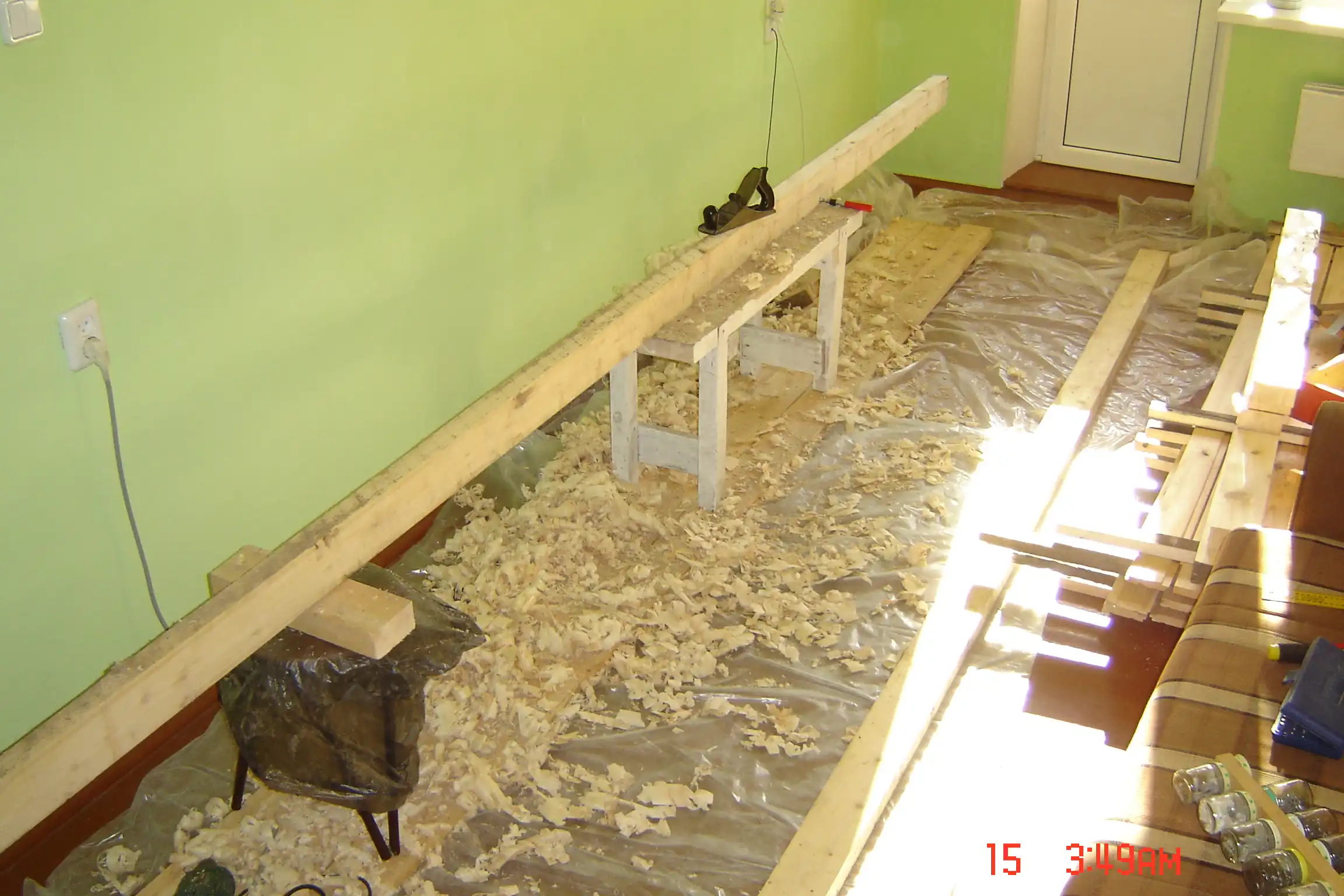 Балкон должен был быть выдвинут наружу, кровлю решил сделать надежную, показанная балка один раз улетела вниз :((