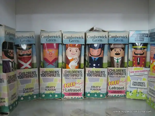 Один из экспонатов. Набор английской зубной пасты, сделанный в виде человечков – героев популярного мультсериала.