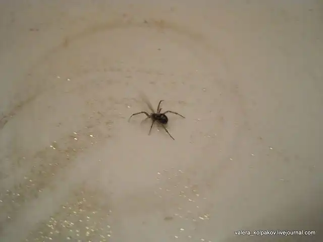 В раковине у меня живет паучок Петюня. Он дурачок. Он плетет паутину там, где нет мух. Каждое утро я смываю его паутину. Чем он питается, я не знаю.