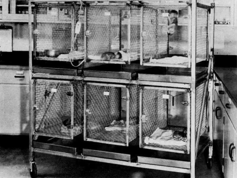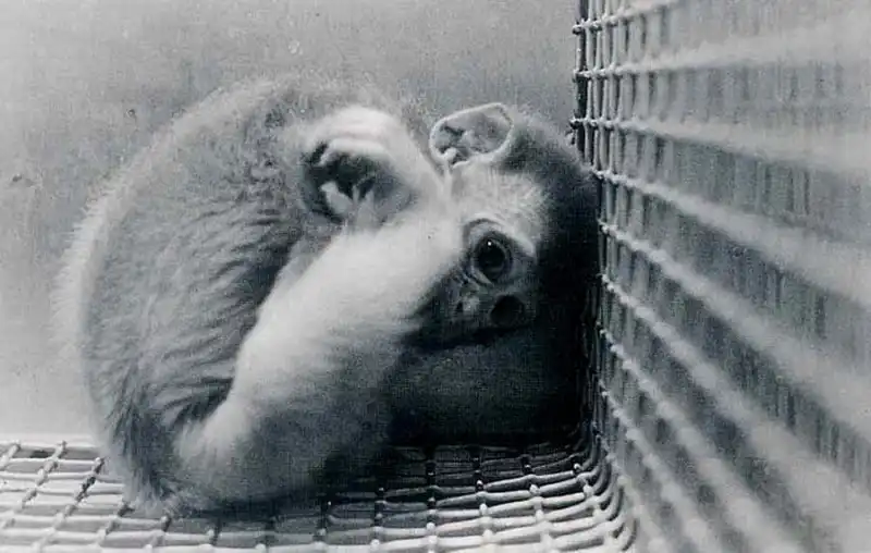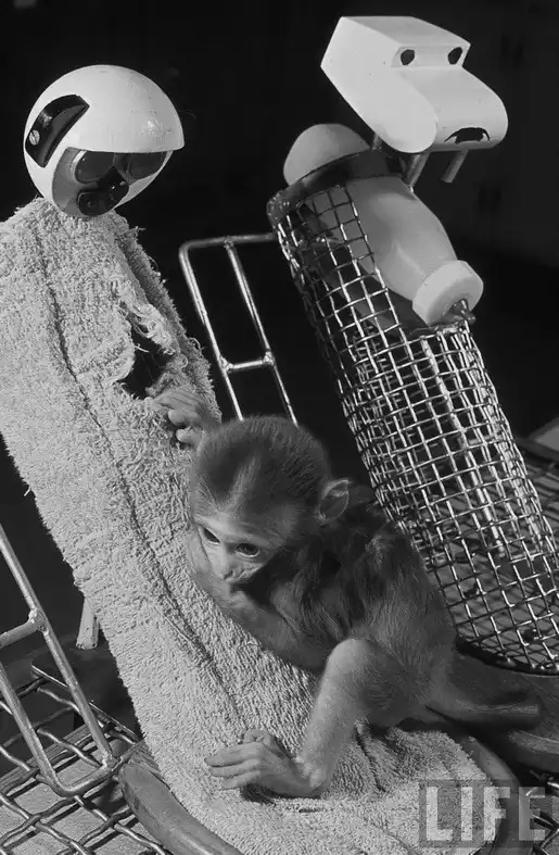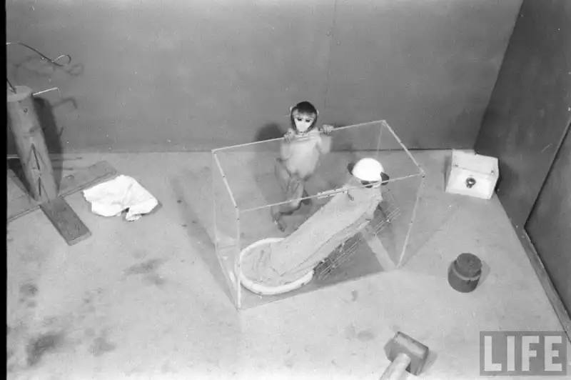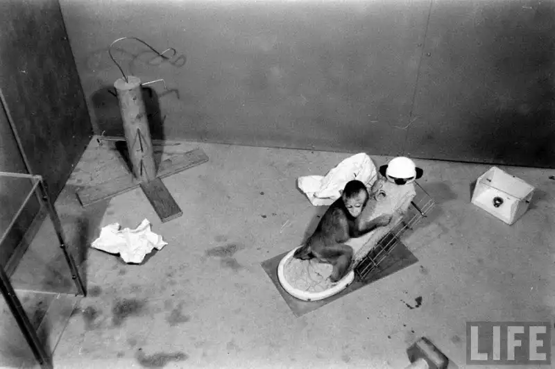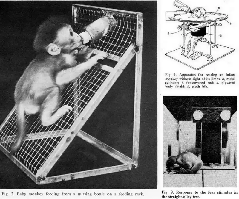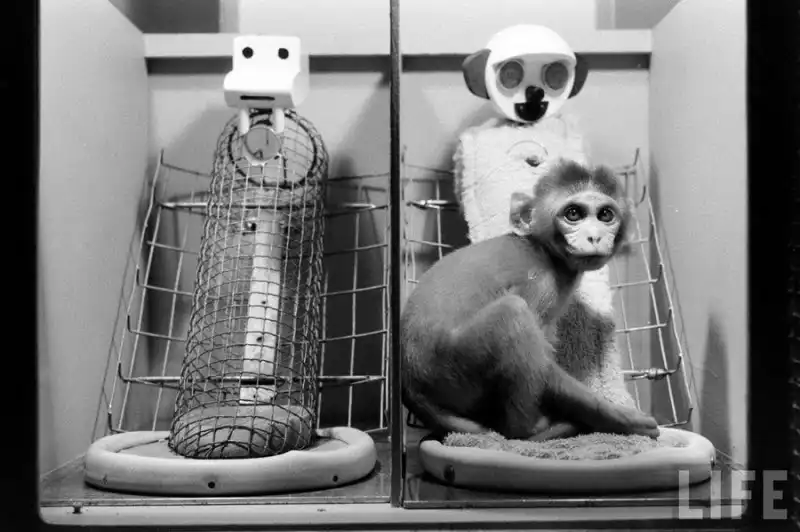 Кроме того, он сделал мягкую суррогатную мать, обернув ее корпус махровой тканью. У второй матери не было соска. Новорожденных детенышей сажали в клетки с двумя суррогатными матерями. Взрослые обезьяны, у которых отняли детей, визжали и бились о стенки клеток; малыши стонали, попав в отдельное помещение. Это продолжалось час за часом, лаборатория наполнялась криками отчаяния и вонью: жидкий стул, как писал Харлоу, указывает на высокую степень эмоционального напряжения.