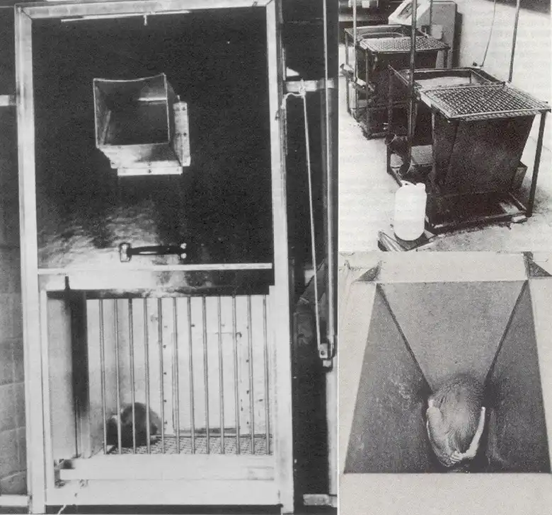 Он разработал изолированную камеру, в которой обезьянка сидела скрючившись, пригнув голову и ничего не видя. Эксперимент продолжался до шести недель. Животное кормили через отверстие внизу камеры, закрытое специальным экраном. Это приспособление Харлоу назвал «колодцем отчаяния». Ему вполне удалось создать модель психического заболевания. Животные, выпущенные из «колодца отчаяния», обладали разрушенной психикой, страдали тяжелыми психозами. Что бы Харлоу ни предпринимал, вернуть их в нормальное состояние не удавалось.