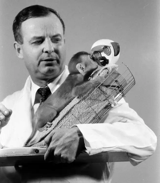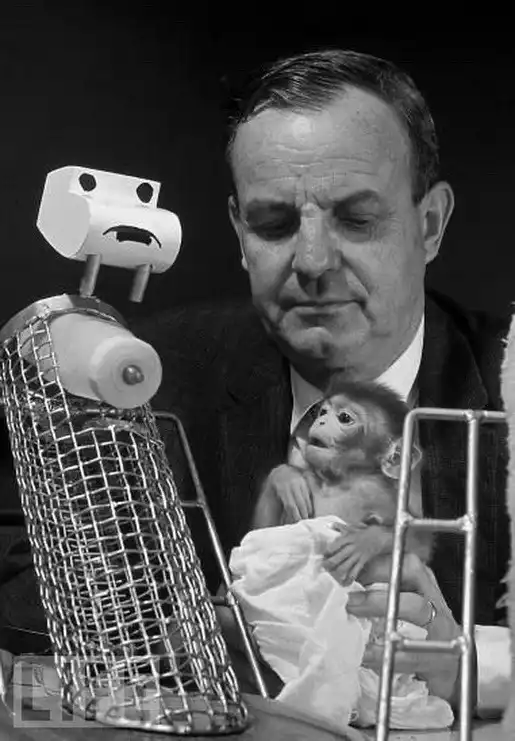 Харлоу выступил с докладом, который назвал «Природа любви» и который стал классикой: «Мы не удивились, когда обнаружили, что комфорт, который приносит контакт, является базисом таких переменных, как привязанность и любовь, но мы не ожидали, что он полностью заслонит такой фактор как питание; действительно, различие оказалось настолько большим, что заставило предположить: главная функция кормления – обеспечение частого и тесного телесного контакта детеныша с матерью… Любовь к настоящей и к суррогатной матери выглядят очень сходно. Как показывают наши наблюдения, привязанность детеныша обезьяны к настоящей матери очень сильна, но ей ничем не уступает любовь, которую в условиях эксперимента детеныш проявляет к суррогатной матери из ткани».
