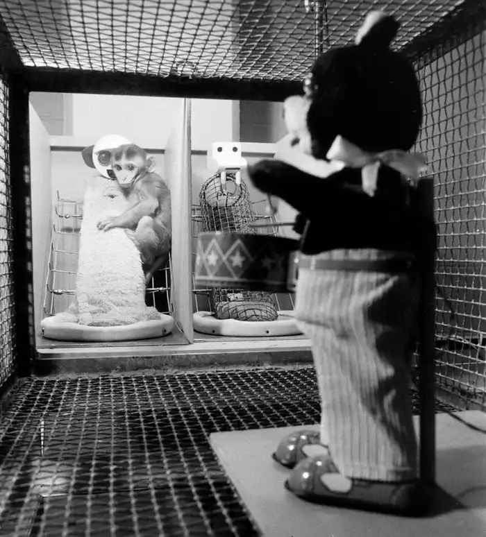 Если в комнате оказывалась матерчатая суррогатная мать, их поведение было другим: обезьянки чувствовали себя в безопасности, с интересом изучали комнату и предметы, расположенные в ней.