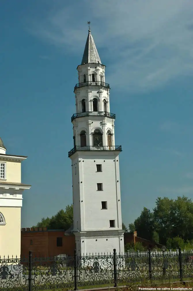 Невьянская наклонная башня. При высоте чуть менее 60 метров, отклонение от вертикали составляет почти 2 метра!