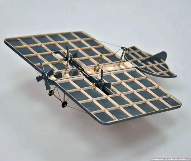 Как неопровержимо доказывают исторические документы, первый самолет был испытан Александром Федоровичем Можайским на двадцать лет раньше братьев Райт. Это модель первого в мире самолета А.Ф.Можайского: