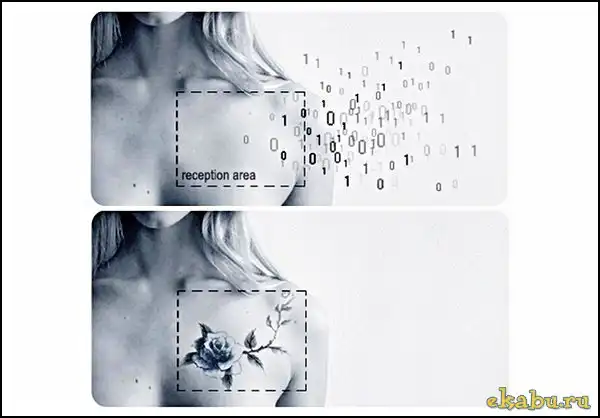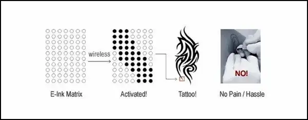А затем проще простого: нужно выбрать или нарисовать рисунок, загрузить его на компьютер или ноутбук, и устройство беспроводным способом моментально передаст необходимую информацию вашему телу, сообщив, каким элементам вживленной матрицы следует потемнеть, чтобы проявиться на коже. Таким образом, рисунок можно менять чуть ли не каждый день, заставляя его то совсем исчезать, если там, куда вы направляетесь, это будет выглядеть некстати, то проявляться в том или ином месте.