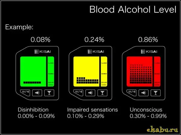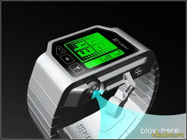 Так, для "калибровки" механизма, требуется выпить немного алкоголя и подуть в специальное отверстие сбоку от циферблата. Девайс обработает информацию, и выведет данные на экран. С каждым последующим "вдуванием" показатели будут расти, а экран менять свой цвет от зеленого, который означает "трезв, как огурчик", до ярко-красного, что должно означать "катастрофа приближается". Вероятно, постовые именно так и проверяют на трезвость подозрительных водителей.