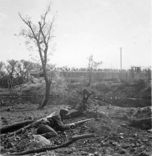 После провала внезапного захвата Брестской крепости немцам пришлось окапываться. Фото сделано на Северном, либо Южном острове.