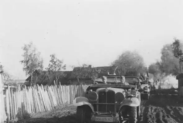 Наступающие части вермахта в Белоруссии. Снимок сделан из окна автомобиля. Июнь 1941 г.