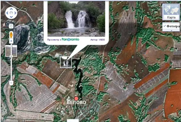 В 1984 году рядом с Белово велись карьерные работы. Работников именно того разреза причисляют к авторам озера из которого и переливается вода образуя водопад.