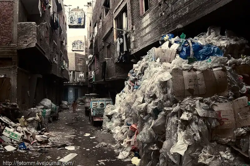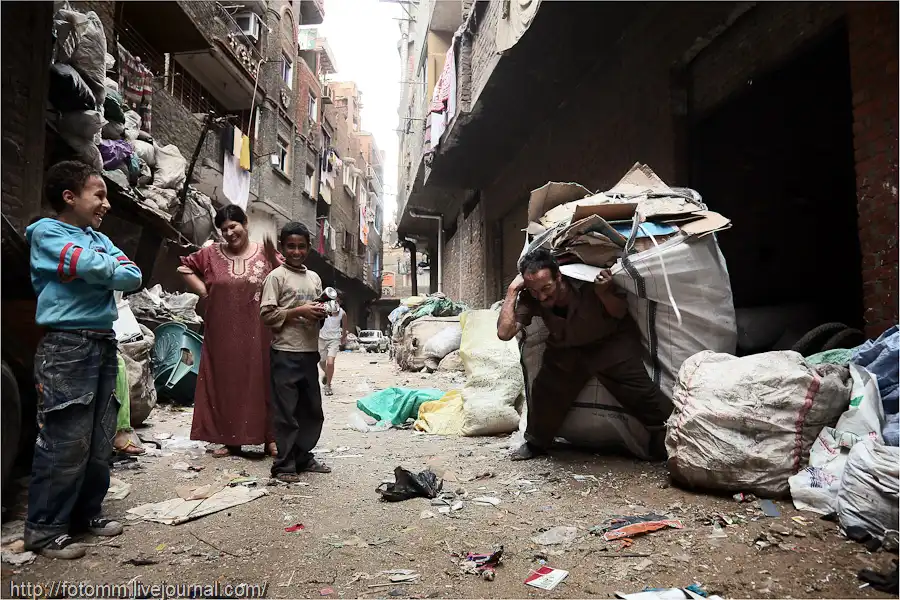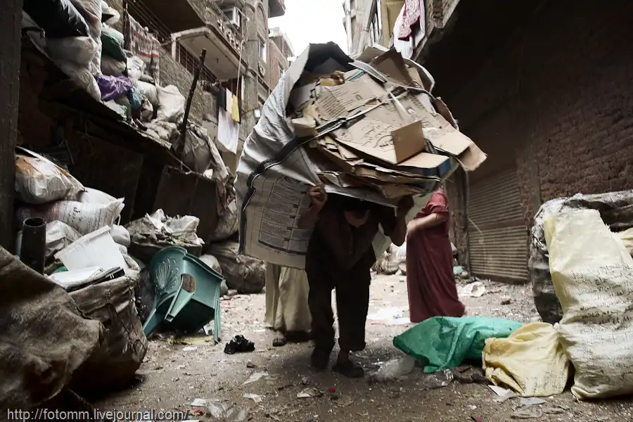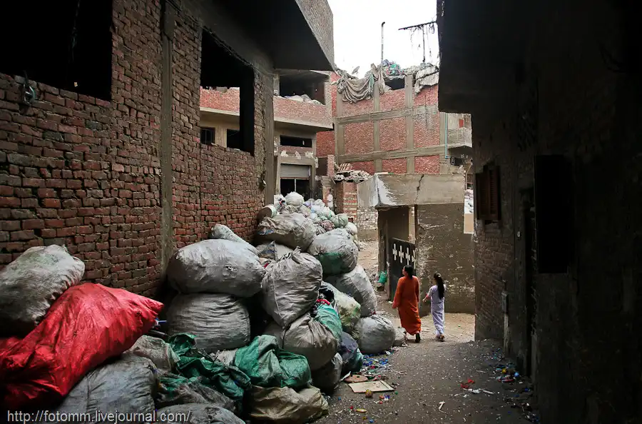 По статистике Каир порождает 6,5 тысяч тонн мусора в день, из которых 3-3,5 тысячи тонн собирают забаллины, так называют представителей особой социальной группы количеством около 40 тысяч человек , проживающих в районе Медина Зебела. Уже на протяжении многих лет они занимаются единственным делом , передающимся из поколения в поколение – сбором, сортировкой и переработкой мусора.