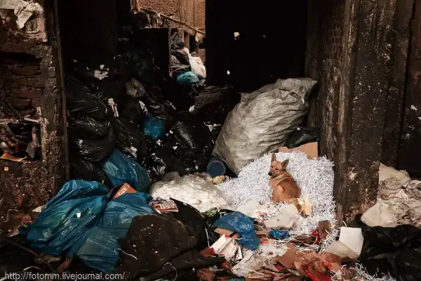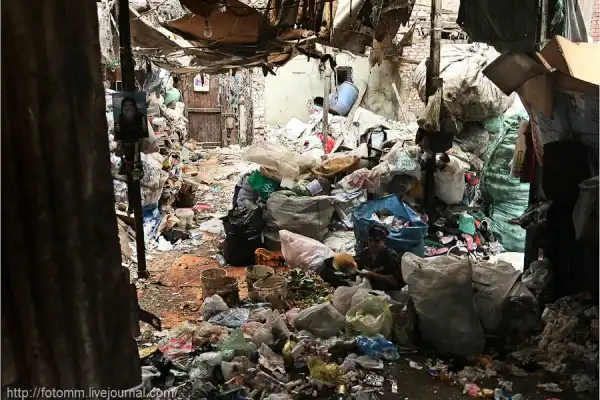 Свисающие с балконов и крыш груды мусора, мешки с отходами , перегораживающие и без того узкие улицы – это первое , что бросается в глаза , когда попадаешь на территорию этого мрачного квартала .