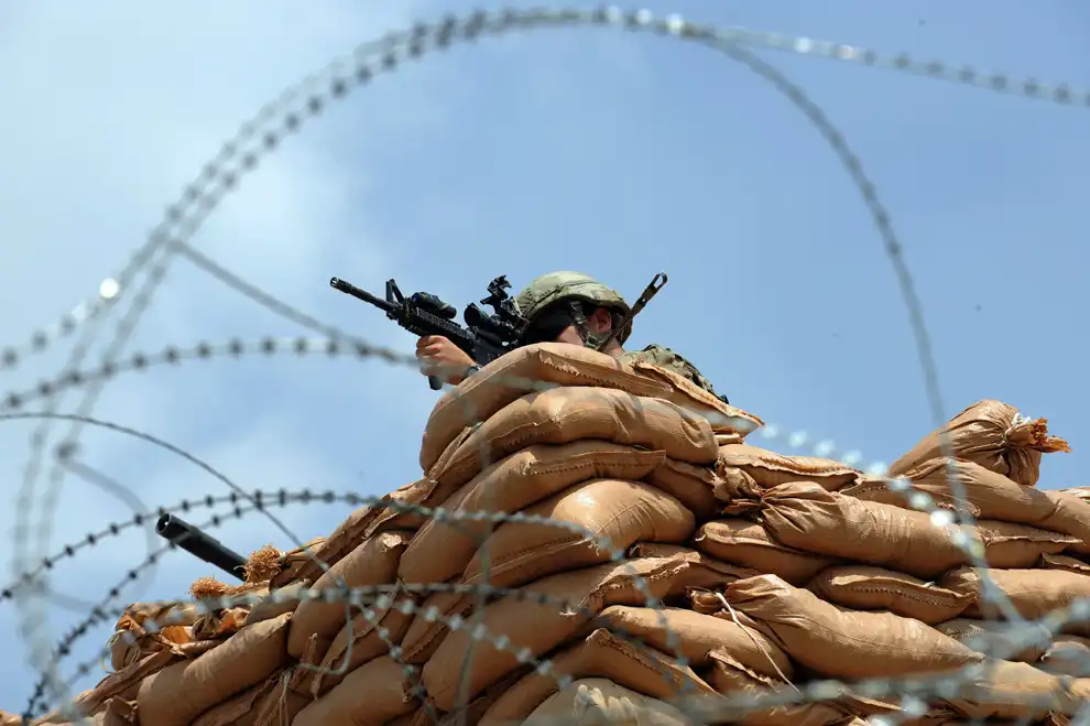 11. Солдат Джон Роджер Прайс осматривает горизонт на посту Сабари. (Ted Aljibe/AFP/Getty Images)