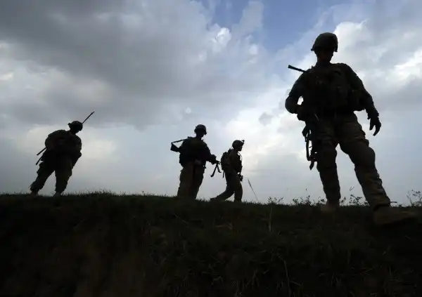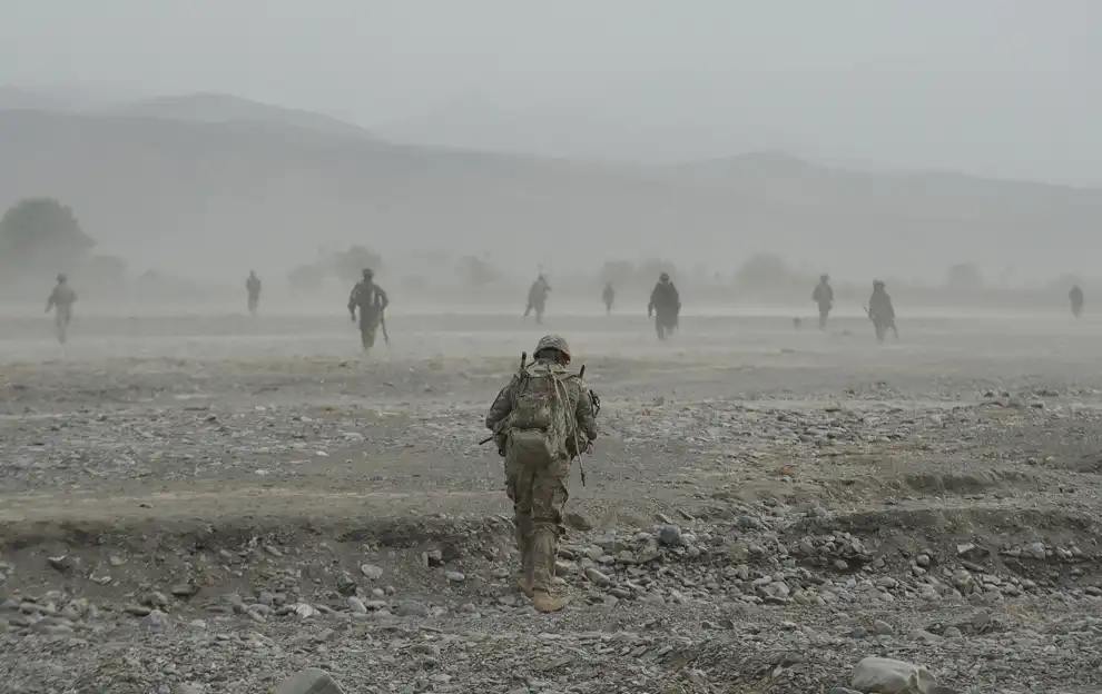 5. Американский солдат с афганскими коллегами во время патрулирования у базы Сабари в провинции Хост на востоке страны. Президент США Обама возразил, что его стратегия в Афганистане не привела к успеху, а «позиция мощи» не позволила тысячам солдат вернуться домой. (Ted Aljibe/AFP/Getty Images)