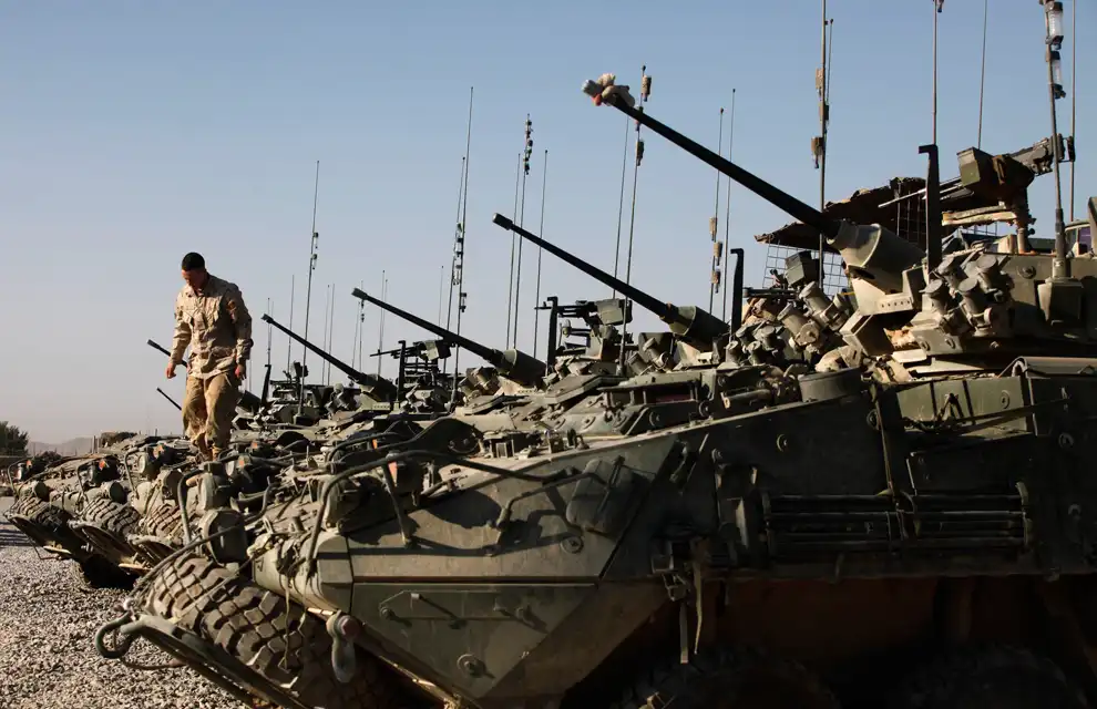 42. Солдат канадской армии на легкой боевой машине перед тем, как отдать управление базой Зангабад американским военным, в округе Панджваи. (Baz Ratner/Reuters)