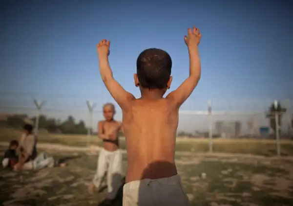 12. Афганский мальчик из провинции Гильменд, лишившийся дома из-за войны, играет у палатки, где временно проживает его семья, в Кабуле. (Ahmad Masood/Reuters)