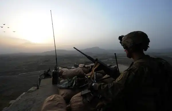 7. Американский морпех на вышке на рассвете в провинции Хост. (Ted Aljibe/AFP/Getty Images)