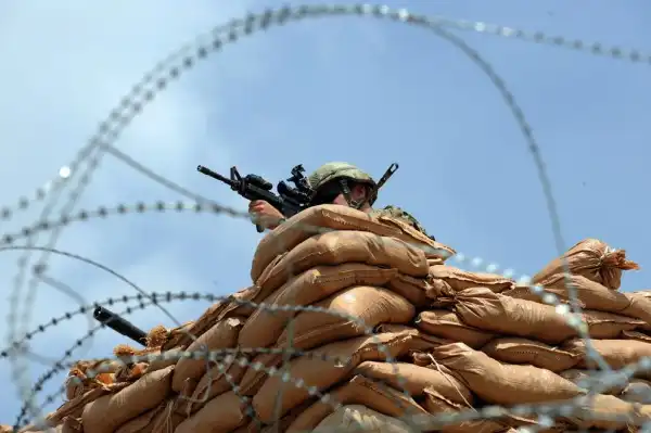 8. Солдаты во время патрулирования территории у поста Сабари. (Ted Aljibe/AFP/Getty Images)
