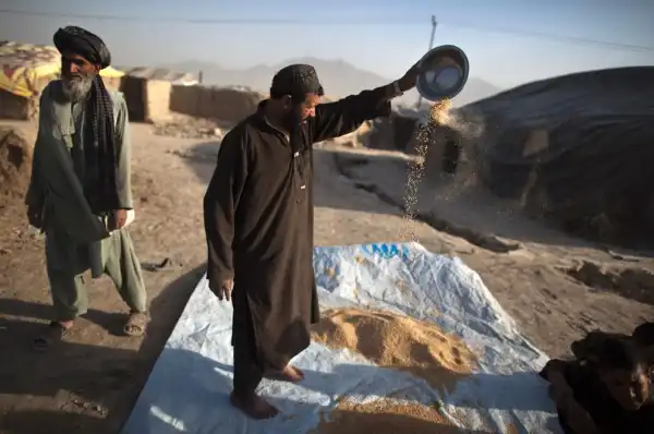 13. Беженец из провинции Гильменд сеет пшено у своей палатки в Кабуле. (Ahmad Masood/Reuters)