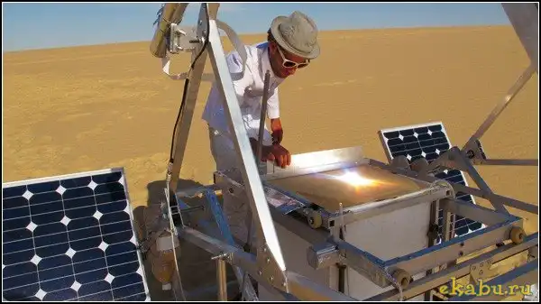Стекло, как известно, делают из песка. Следовательно, налаживать стекольное производство было бы логично там, где песка полным-полно - то есть прямо посреди пустыни. А еще для изготовления стекла нужна высокая температура. Но ведь в пустыне светит яркое и горячее солнце! Как видите, идея пустынного стекольного завода очень логична. Но проект Solar-Sinter - это не простое производство стекла, а еще и гигантский трехмерный принтер.